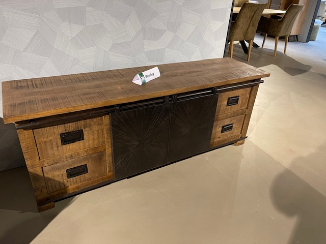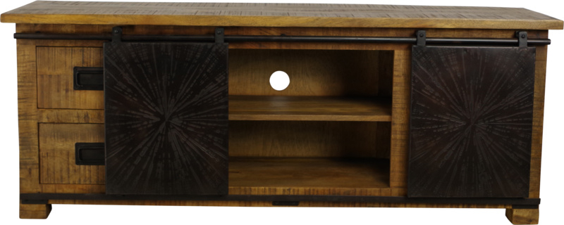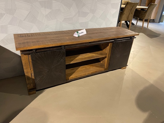 Dit stoere tv-meubel past perfect in een landelijk of industrieel interieur.