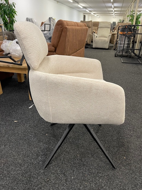 Deze super mooie eetkamerstoel is 360 gr draaibaar met auto-return systeem