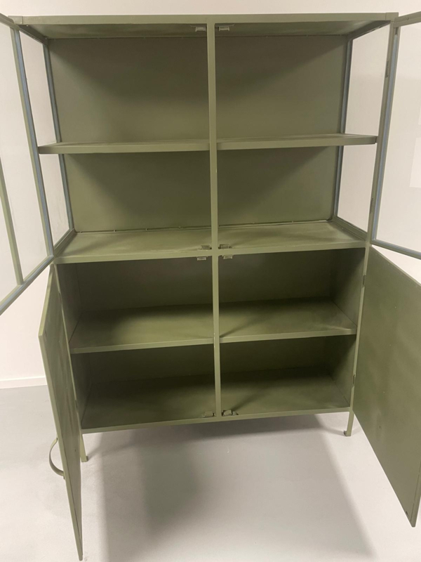 Deze vitrinekast olijfgroen model F 130 een opbergmeubel waar u interieur naar op zoek bent