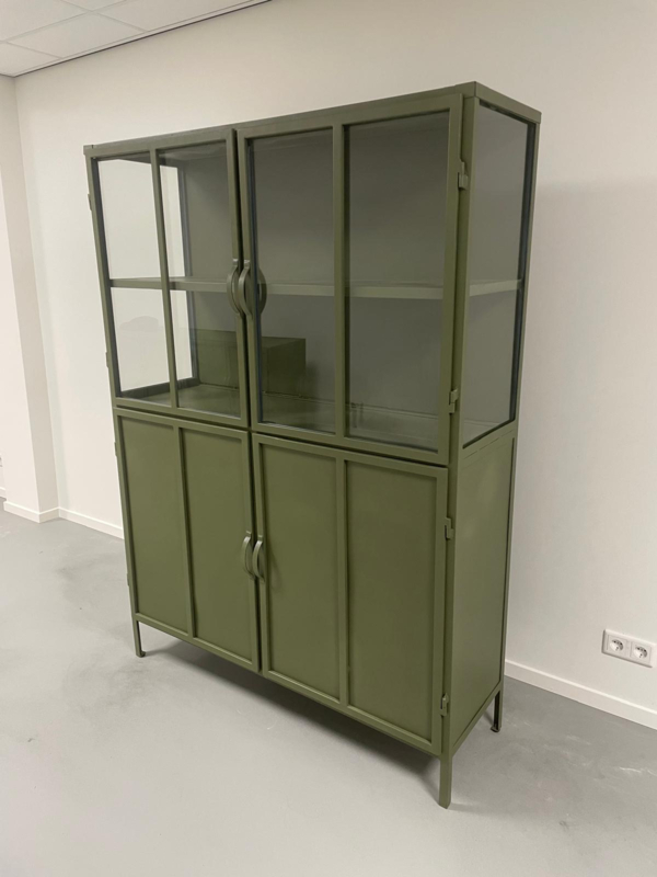 vitrinekast metaal groen glas exclusief model 130 cm breed voor de laagste prijs