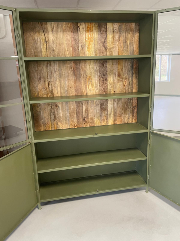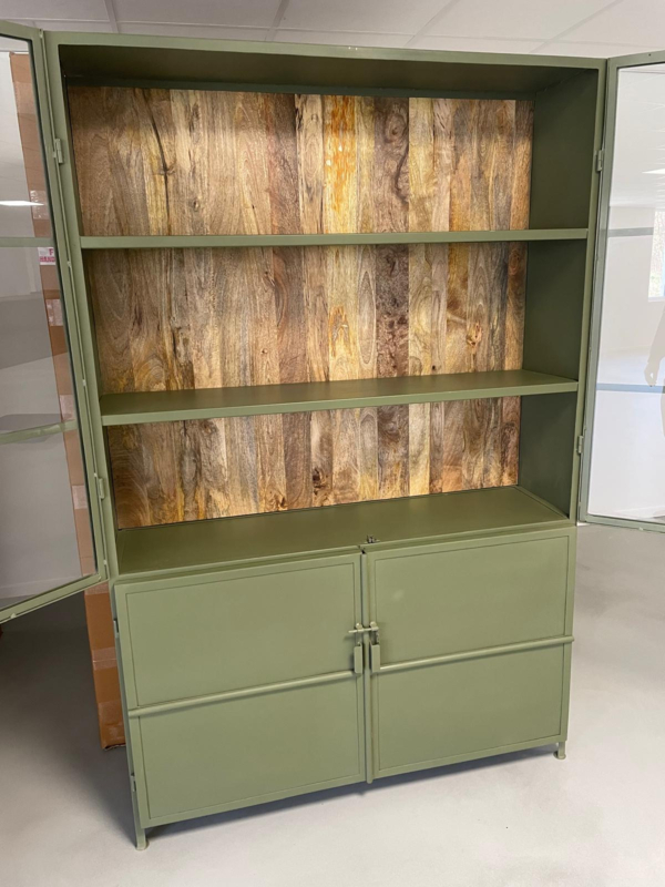 BRUSSEL Groen/ mango industriële Vitrinekast 130 cm breed tijdelijk speciale aanbieding