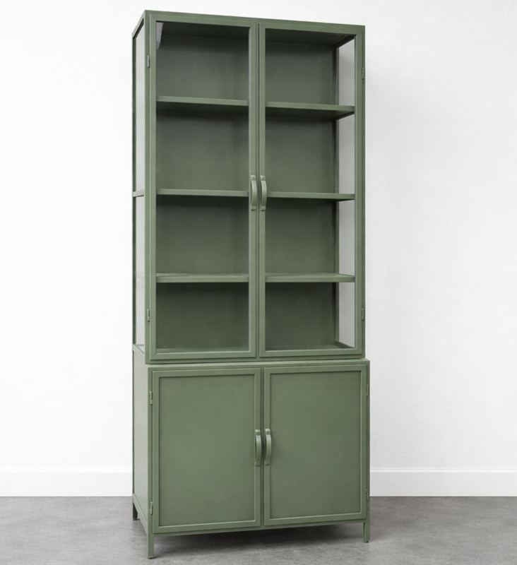 F95 groenvitrinekast exclusief model 95 breed voor de laagste prijs voorraadVITRINEKAST groen metaal glas exclusief 95 cm breed